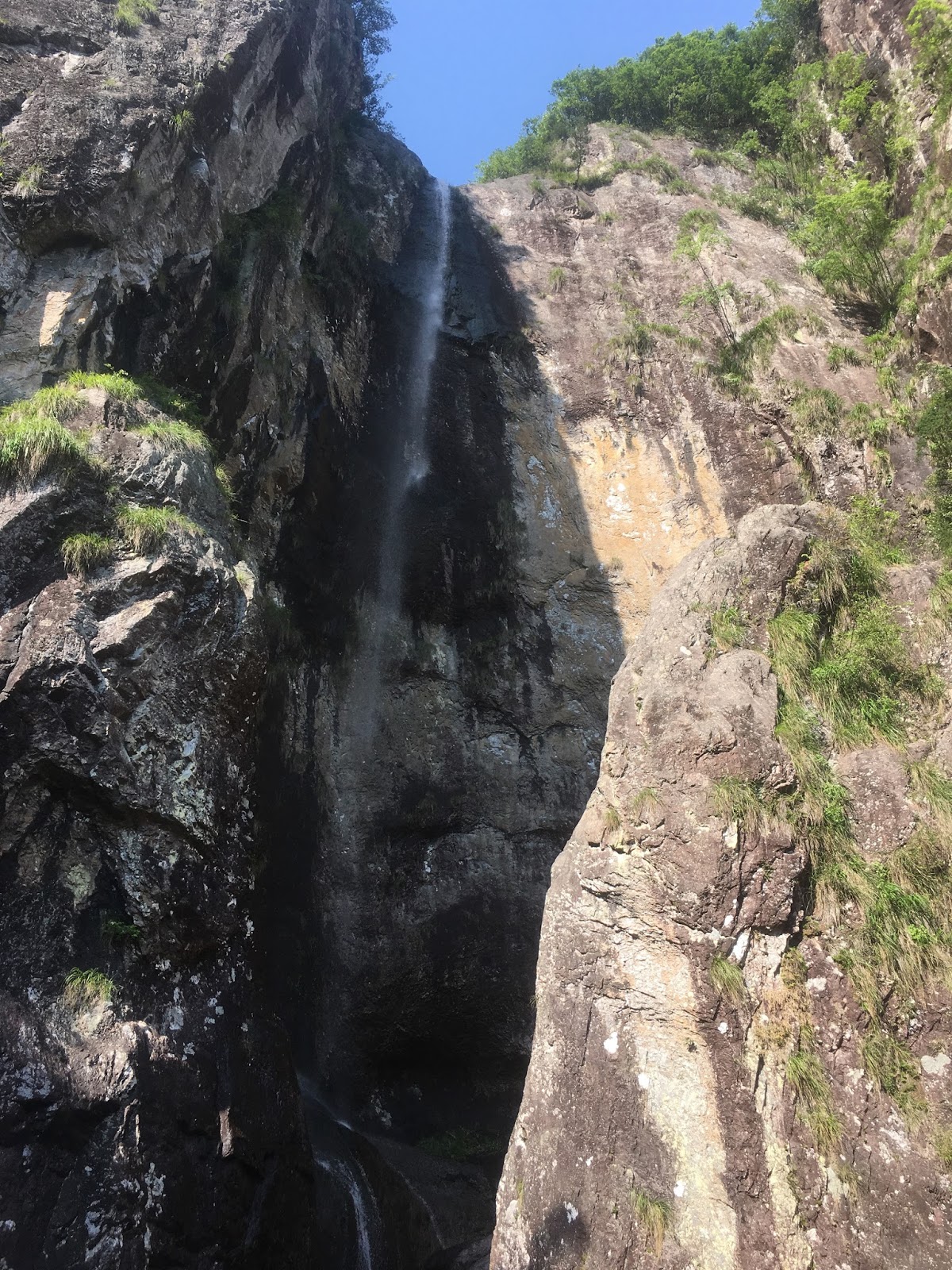 劳动节 we got up early to get a train to yandang mountain. , we were both pretty tired, upon arriving we got the local bus , taxi guys offered us but the bus left pretty soon so we just got that, though it was a bit slow as the road was winding and full of cars, a bumpy slow ride we got it to the waterfall area getting a student entrance. we didn't need to walk far, and unfortunately due to the season the waterfall wasn't flowing very rapidly or largely, so we didn't stay long, bit disappointing as that was all there really was to see. we tried some local weird jelly type drink, i wasn't the keenest haha (果子冻) we then came across some local "cigars" wrapped in tea leaves/ jim called them BANDIT CIGARS 土匪烟 we found a nearby tea field with no-one in it we sat down in the sun, put on some music and tried out the cigar (jim going first and coughing haha did look totally badass though. afterwards we decided to walk on down and explore the areas ourselves, the next proper scenic area was quite far but we ended up finding something better!\ it was still